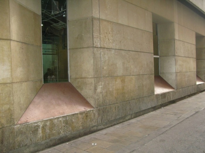 ▼西班牙巴塞隆納:窗台是傾斜設計,遊民無法在這裡睡覺。