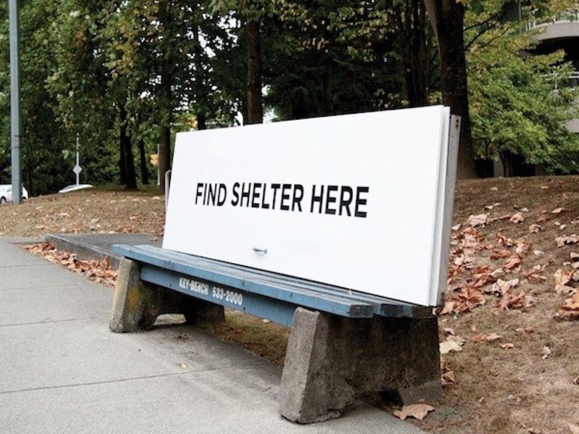 ▼世界其他國家都在反街友,加拿大公園中的長椅卻是專為街友設計的。上面寫著溫暖的標語:「這裡就是你的避風港。」