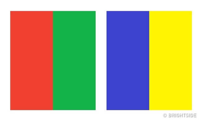 ▼7)我們的大腦無法想像出一些顏色,例如紅+綠或者藍+黃而形成的顏色。