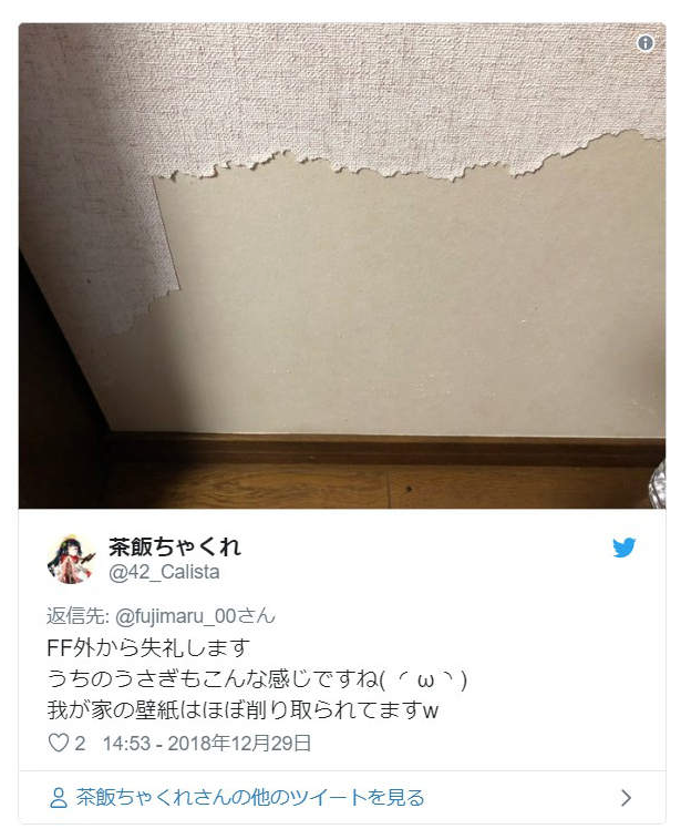 ▼許多飼主都回說:「沒錯!我家的兔子也是那樣,家裡的壁紙幾乎快被牠剝光了。」
