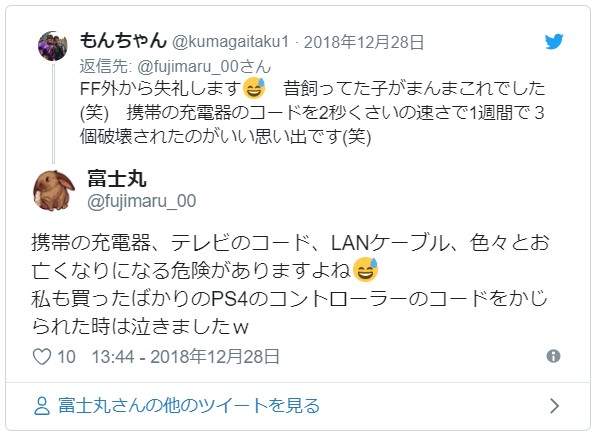 ▼「一個禮拜就能破壞三條手機充電!連當時剛買的PS4遙控器線也被咬過!」