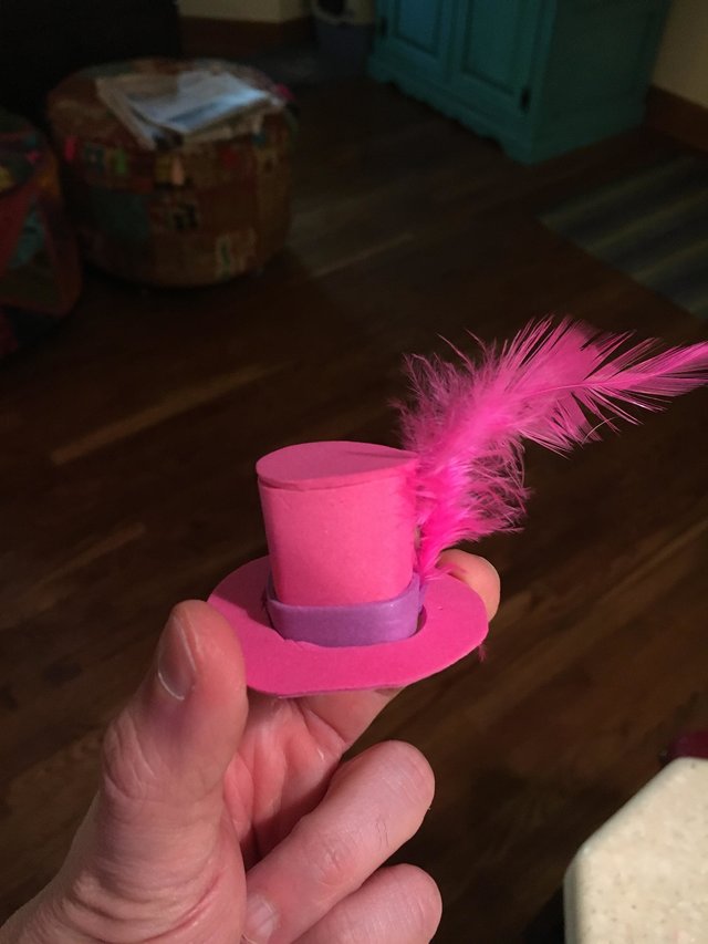 ▼​他希望自己的蟾蜍朋友時尚一點,所以用泡沫紙做了一頂鮮豔的禮帽。小蟾蜍戴上後沒有反抗,大概是喜歡吧。