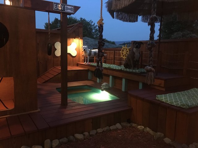 ▼過去的兩年裡,Aaron一直在建造豪宅。不過他不是自己住,而是為家中的4隻狗狗準備的,所以豪宅相對來說比較迷你。這棟狗狗豪宅裡有休息室、游泳池、花園、消防水龍頭、軟軟的墊子,舒服的不得了。