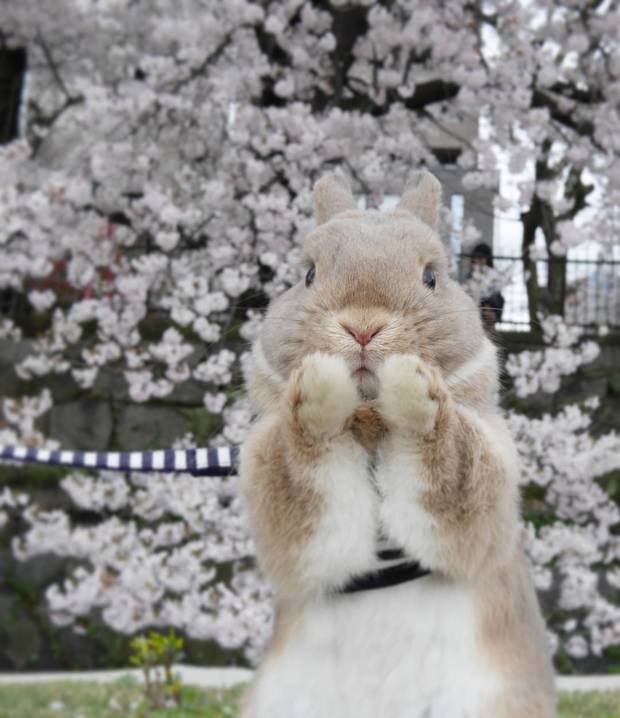 賞櫻花的模樣超治癒~ 主人拍「兔兔的日常」讓大家看牠過得有多爽