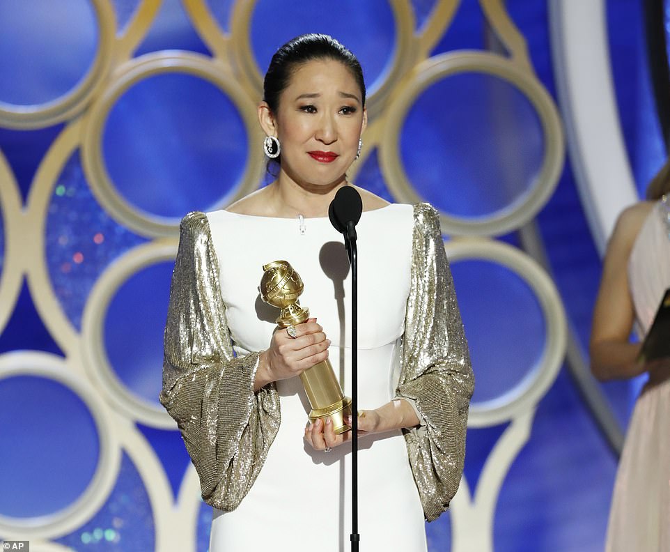 ▼韓裔女演員吳珊卓(Sandra Oh)不僅是典禮主持人,還榮獲最佳戲劇類影集女主角。
