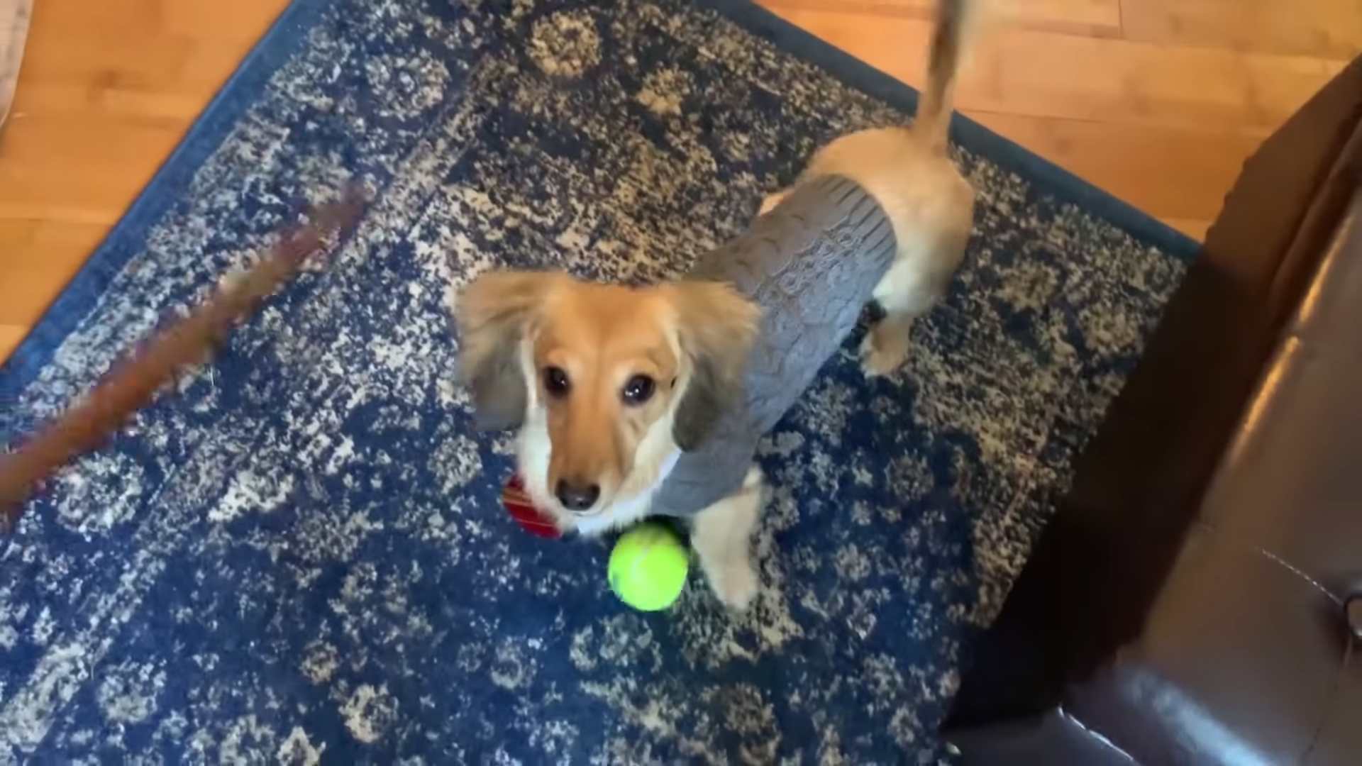 ▼當主人說出「速速前,球球」,牠就會乖乖跑出去,把球撿回來~