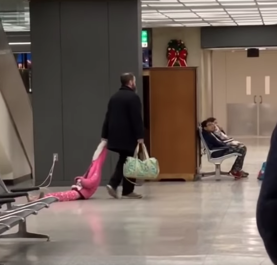 2019年01月09日當小孩不聽話,而爸媽的心情又很糟糕的時候,就會出現各種奇異的畫面。美國華盛頓杜勒斯國際機場就有乘客拍到很狂的一幕,一名爸爸居然直接無視女兒賴在機場地板,雙手一抓住她的外套兜帽就開始走!