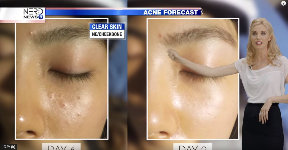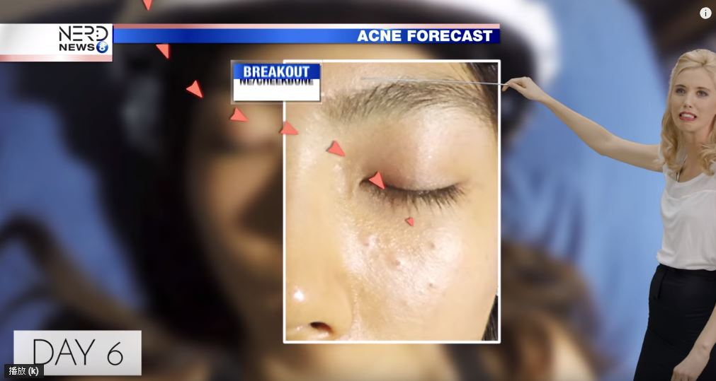 ▼在這個為期9天的實驗,理科太太每天都要戴著裝有攝影機的安全帽,藉此記錄臉上痘痘的變化。
