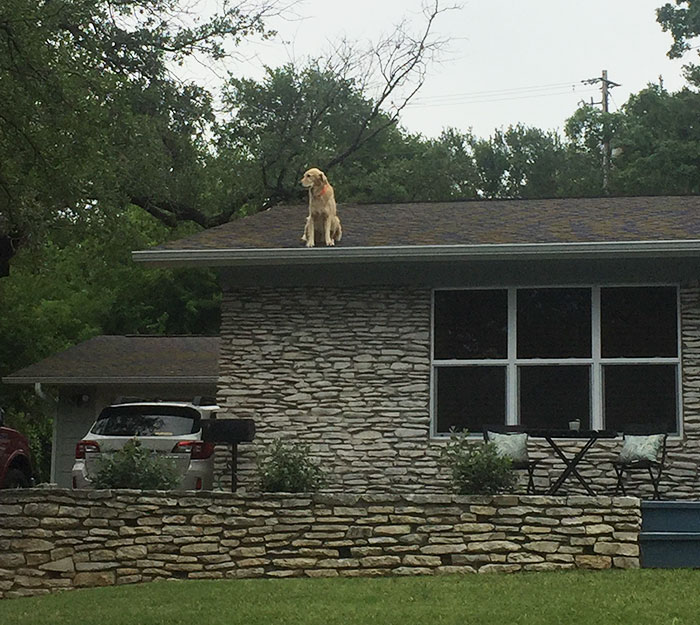 ▼很多路人看到屋頂上的Huckleberry,都緊張跑去敲他家的門,擔心狗狗出事,希望他們趕緊把狗狗帶下來。