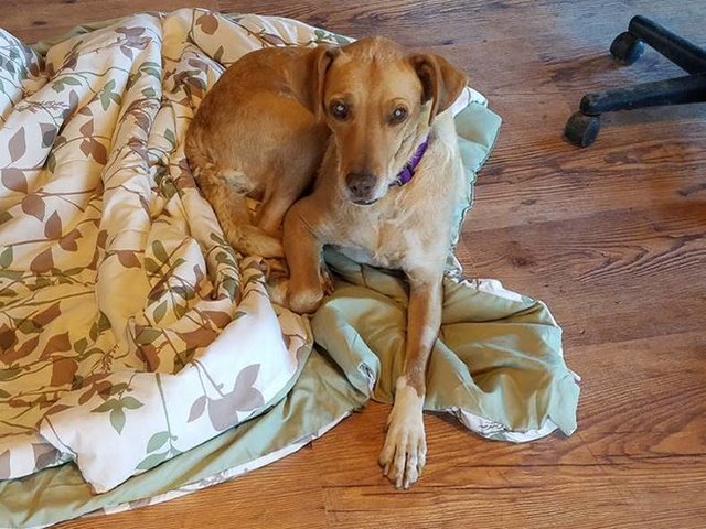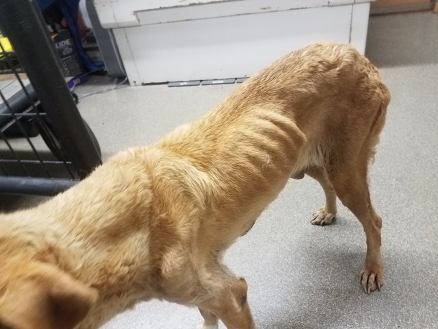 ▼餅乾剛到庇護所時,狀態非常不好,以同年齡與體型的狗來說,牠應該要重32公斤左右,但餅乾體重只有一半。牠還有著乳房腫瘤、罹患白內障眼睛看不見,以及糖尿問題。