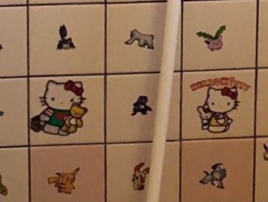 ▼不過一些眼力好的網友發現,牆壁上的貼紙不僅有精靈寶可夢,還有《精靈寶可夢》的主角大木博士、小智。他們與精靈寶可夢混在一起,讓人哭笑不得。甚至連Hello Kitty都被貼上牆了。