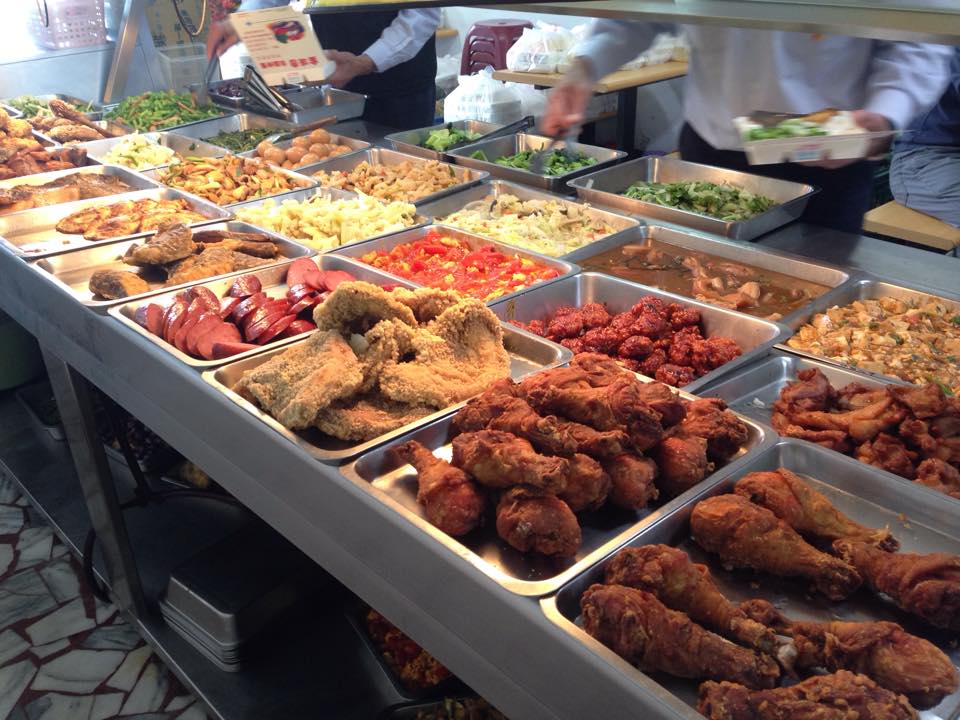 ▼這些超便宜的便當店,只要花50元可以買到「3菜1肉」,內用更是有炒麵和粥吃到飽。喝的部份也有甜的仙草、鹹的雞湯可以喝,想要省錢來這裡就對了。