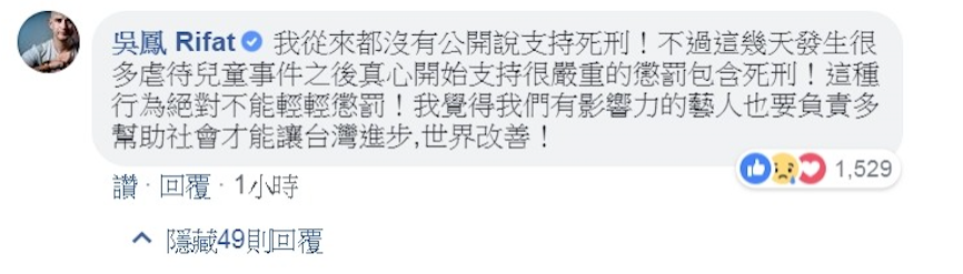 ▼吳鳳的言論很快就引起全台網友的力挺,大家都附和表示「我們需要藝人幫忙發聲,要全國人民重視這個問題」、「希望更多藝人力挺,全台人民給政府施壓!」、「不能再有更多的兒童受害!」、「這不是台灣應該有的樣子」!