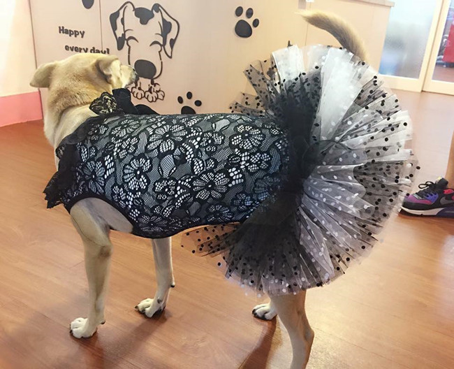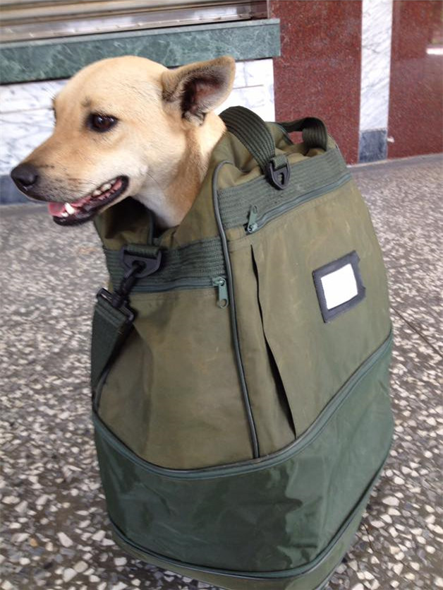 ▼看到如此乖巧的流浪狗沒有人要,劉黃黃的心裡很不捨,終於熬到退伍的日子,他用當兵用的黃埔大包把小黃狗裝進去,從頭程坐火車,回到桃園的家裡,幫牠洗乾淨,給牠準備舒適的小窩,給牠穿上漂亮的裙子,帶牠四處遊玩。告別流浪生活的小黃狗,也有了自己的名字「小黃妹」,牠知道自己終於有了一個溫暖的家,眼神也變得有精神起來。