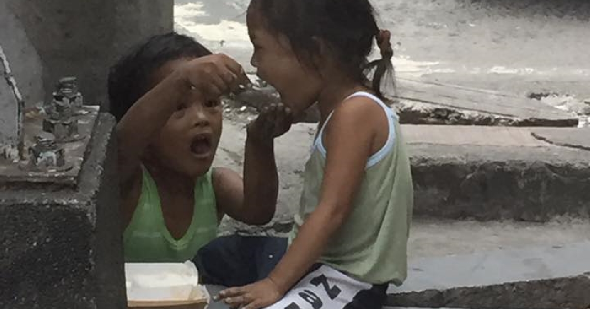▼在小男孩眼中,這份餐點是難得的美食。但他沒有自己吃,而且送給了妹妹。雖然他沒有吃到美食,但看妹妹吃得開心,他也就心滿意足了。