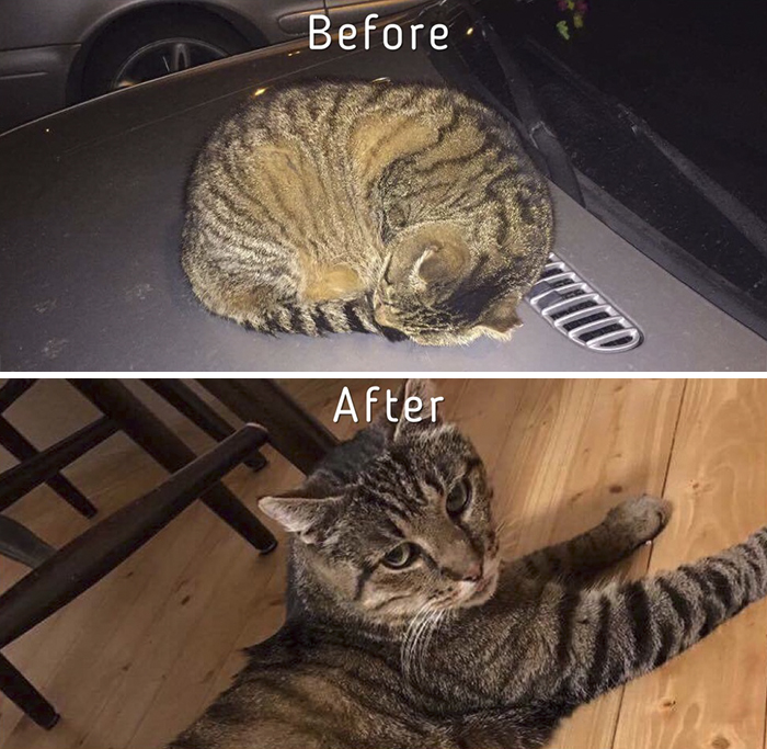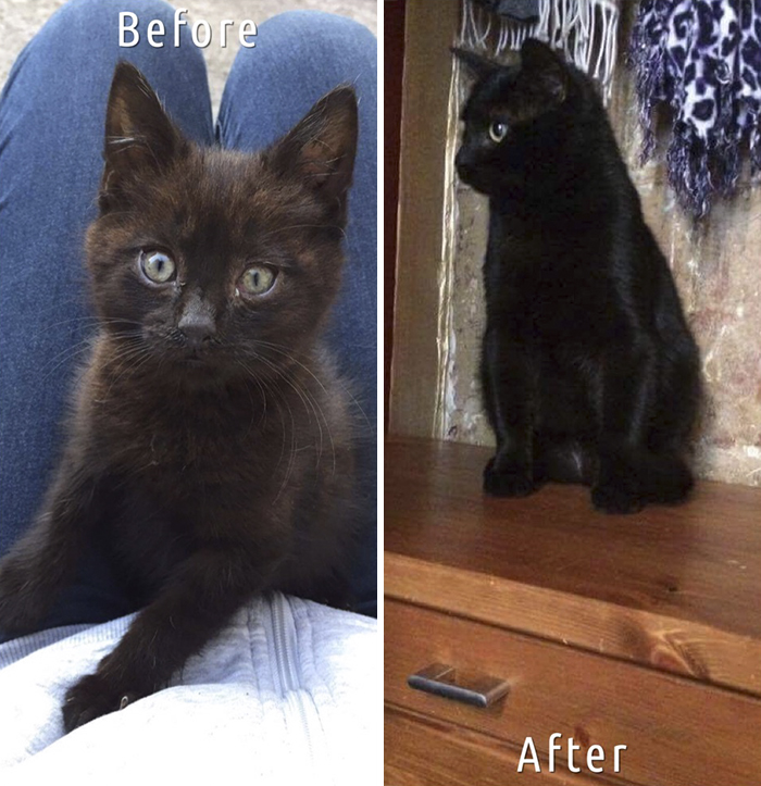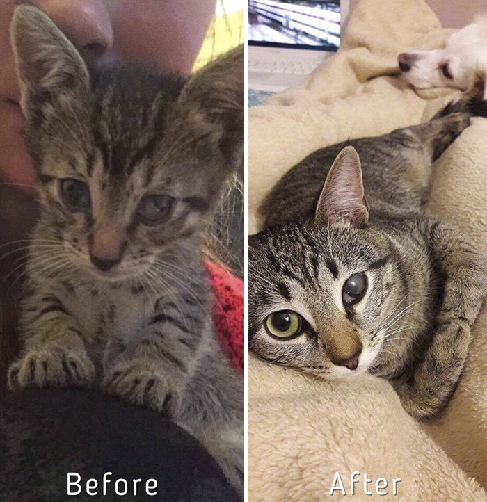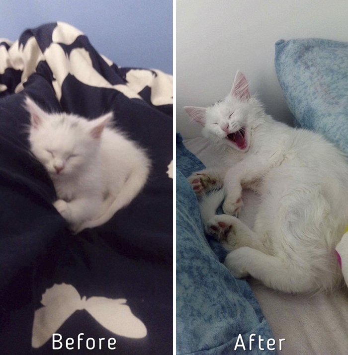 ▼9. 看到領養前後的對比照,就知道人類可以對街貓帶來多大的改變!