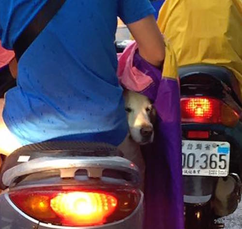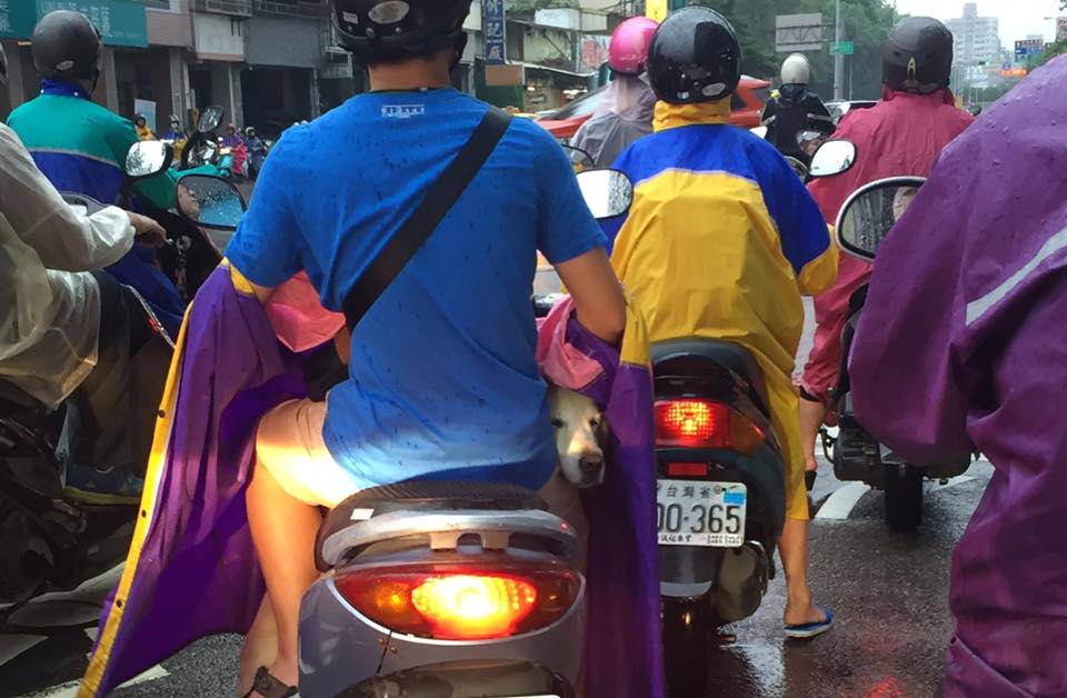 機車騎士下雨天雨衣穿前方? 網友看到「一顆狗頭」瞬懂心好暖