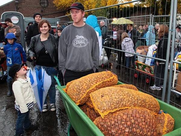 ▼這個活動讓民眾可以提早到郊區或野外收集這些堅果,許多鄰近城市的小朋友都已經養成了收集的習慣,等到交換日時再請父母將堅果帶到會場去更換軟糖,每個人的堅果交換上限是50公斤。