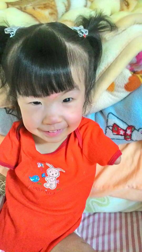 ▼根據《蘋果日報》的報導,又立的母親在懷孕期間進行了9次的超音波掃描,卻都沒有發現任何的異樣。結果在又立出生時才發現,她的右腳和雙手都已經萎縮剩下半截,就連左腳也只有3隻腳指頭。
