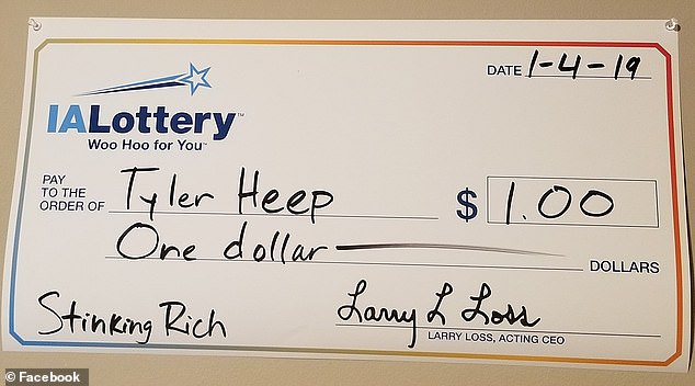 ▼沒錯,就是只有一元而已!但是,Tyler認為一元也是中獎,而且也沒有規定只有中大獎的人才能領取大支票。結果他到樂透總部的時候,大膽開口提出自己的要求。當對方爽快答應的時候,他還愣了一下。