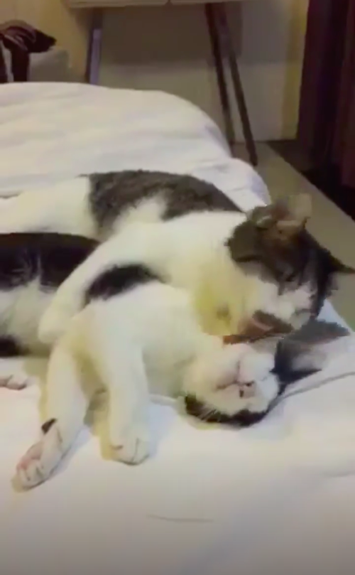 ▼Aldous的故事被po到網路後,引起了很多人的關注。動保團體的工作人員最後選擇一對情侶當Aldous的主人。這對情侶家中有一隻眼睛看不到的雌貓,正好可以與Aldous作伴。Aldous被收養後果然很快樂,兩隻貓咪相親相愛的畫面讓人很感動。