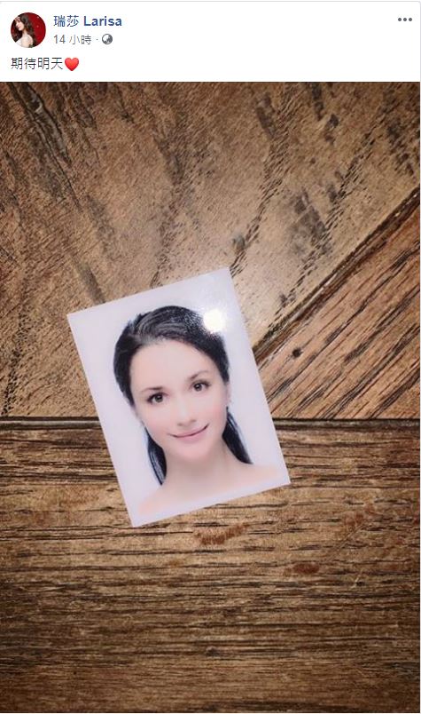 ▼瑞莎也在臉書上分享了自己的證件照,表示「期待明天」!