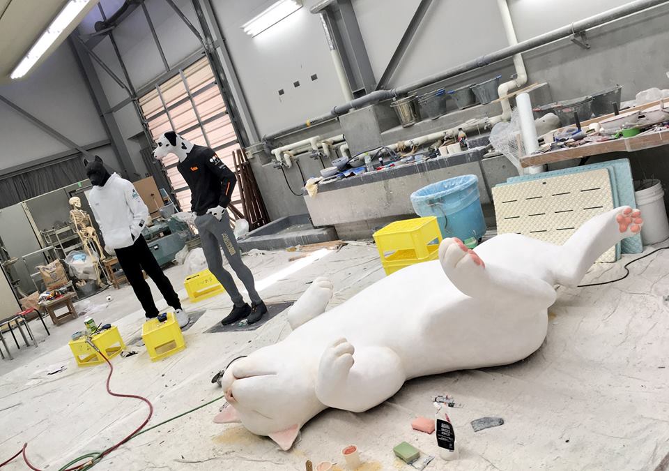 ▼原來 ぼぼち 為了拿出最好的作品,於是花了長達半年的時間,做出了一隻兩公尺長的巨星貓咪像。