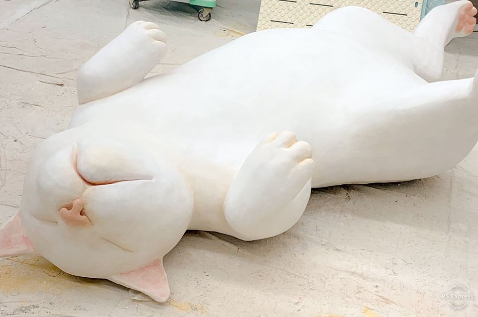 為畢展花半年做出「2公尺露肚大白貓」 女大生徵人:展後找收養