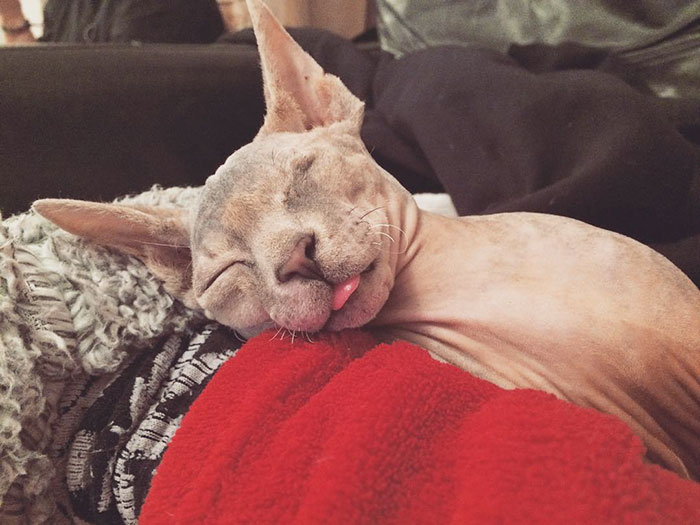 ▼這隻貓咪叫做Stitch。Phoebe看到牠的一刻,就決定將牠帶回家。