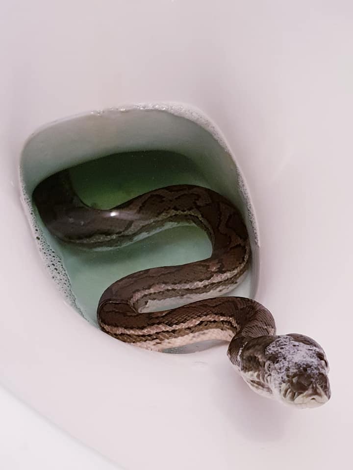 上廁所驚見「蟒蛇在馬桶裡泡澡」 全家嚇歪:幸好沒有直接坐下去