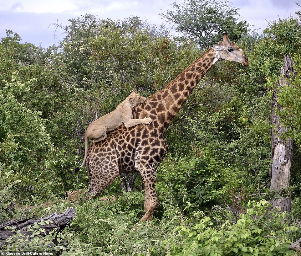 ▼野生動物導遊Emily Whiting在南非克拉西里私人自然保護區(Klaserie Private Nature Reserve)目睹了一場鹿獅大戰。當時長頸鹿正在覓食,6隻獅子突然出現,把牠當成了獵物。