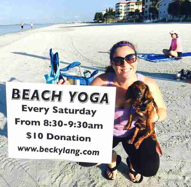 ▼摩根甚至還參加了沙灘瑜珈呢!