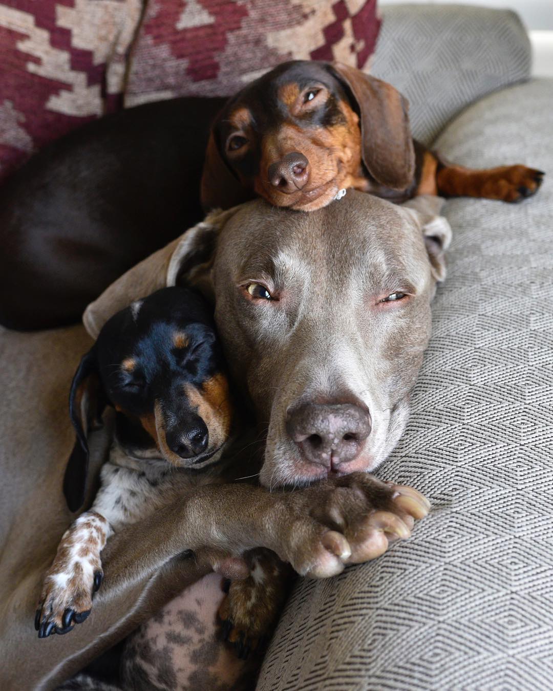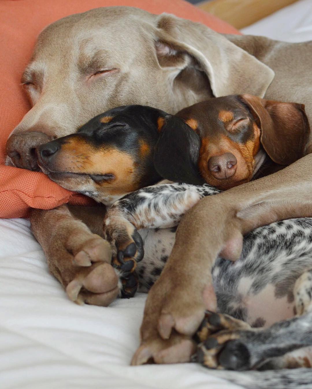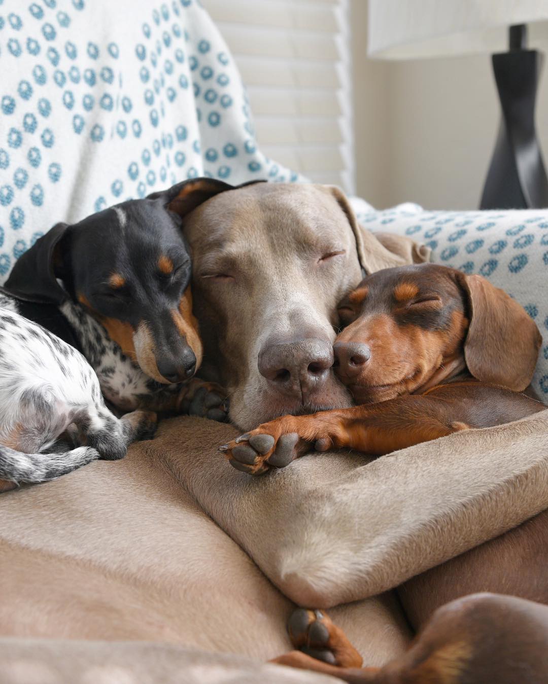 ▼雖然印第安納和瑞斯才剛剛加入這個家庭不久,但是熱情的哈洛哥哥卻已經把牠們當成一家人,3隻狗狗每天都形影不離地黏在一塊,連睡覺都不願意離開彼此,仿佛只要有對方在,自己就已經擁有了整個世界。