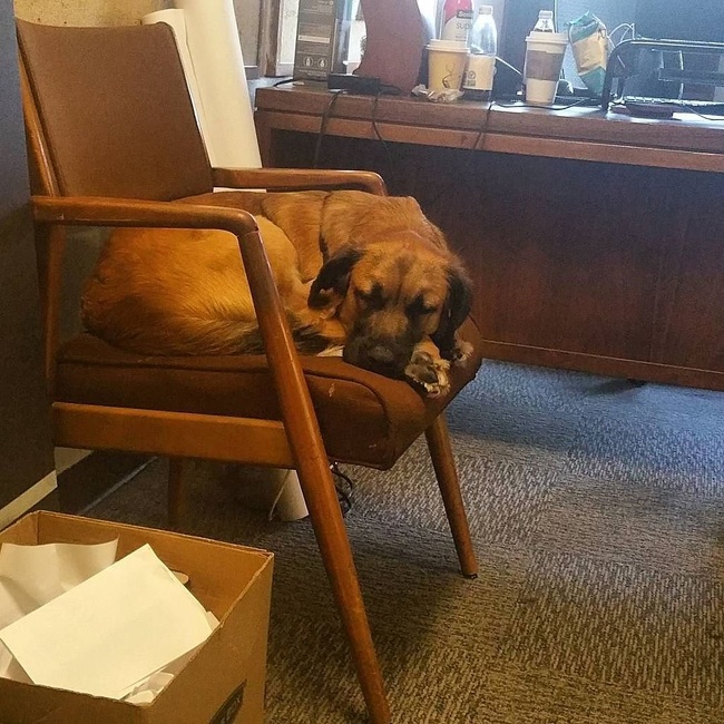 ▼就連辦公室的狗狗都覺得累了。