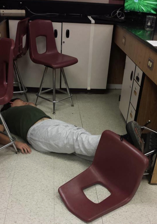 ▼馬上就是期末考週,室友從椅子上掉下來後,笑了30秒,接著她睡了40分鐘。