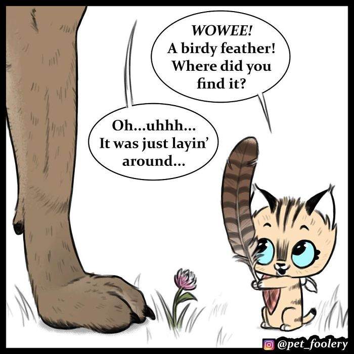 ▼小精靈:「哇,鳥的羽毛,你在哪裡找到的?」