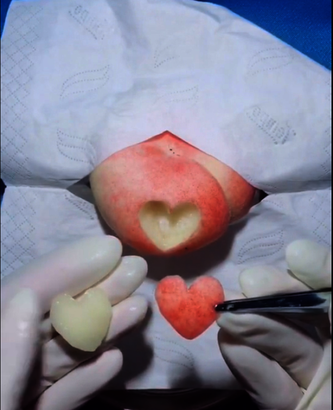 ▼​身為專業的醫生,王野虓給水果「做手術」非常認真。他會模仿真實手術的步驟,消毒、開刀、切除壞組織、縫合等等,每一個步驟都做得很認真。網友們看到後都覺得學到了很多,也稱讚他非常專業。