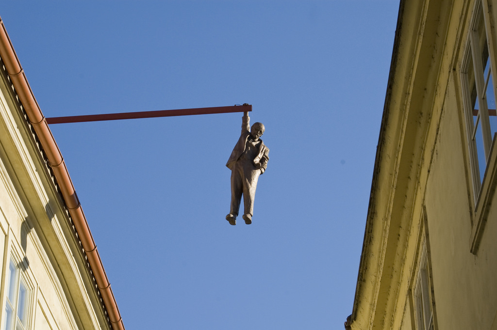 ▼捷克布拉格 ,「懸吊在外的男人」。