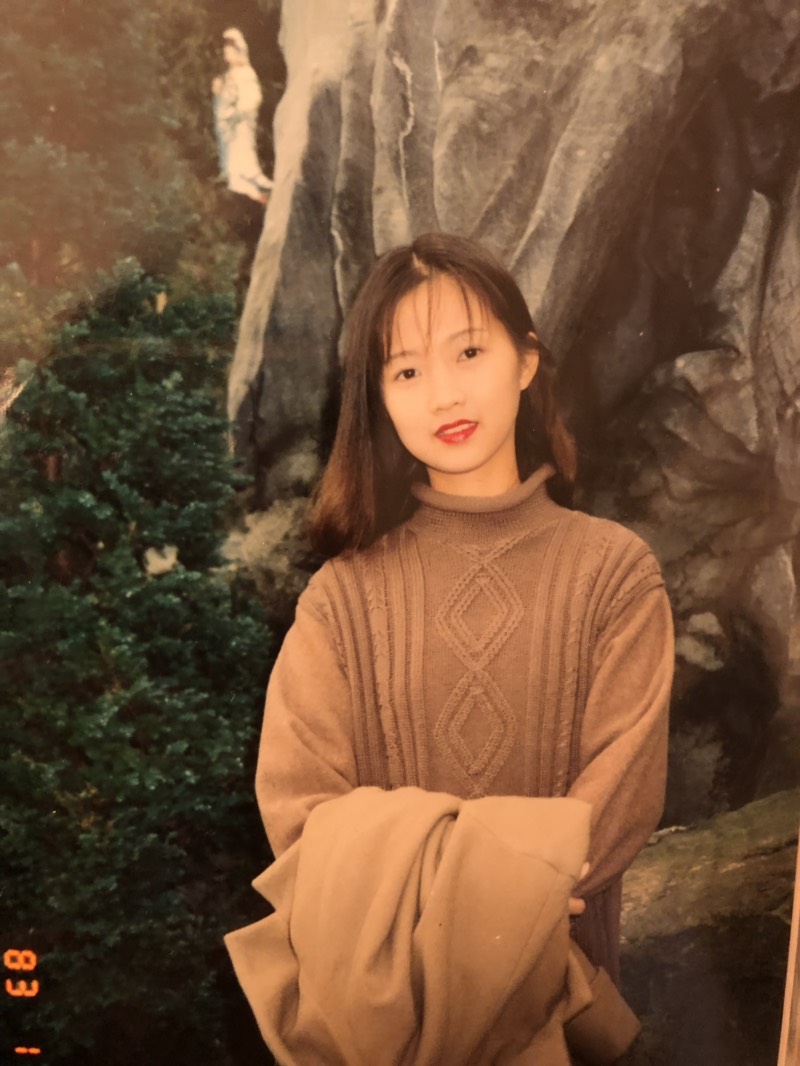 ▼照片中的媽媽非常時尚,她一頭內彎半長髮,留著現在都不過時的空氣瀏海,報童帽搭配高領毛衣,不管是妝髮還是穿搭都無可挑剔。