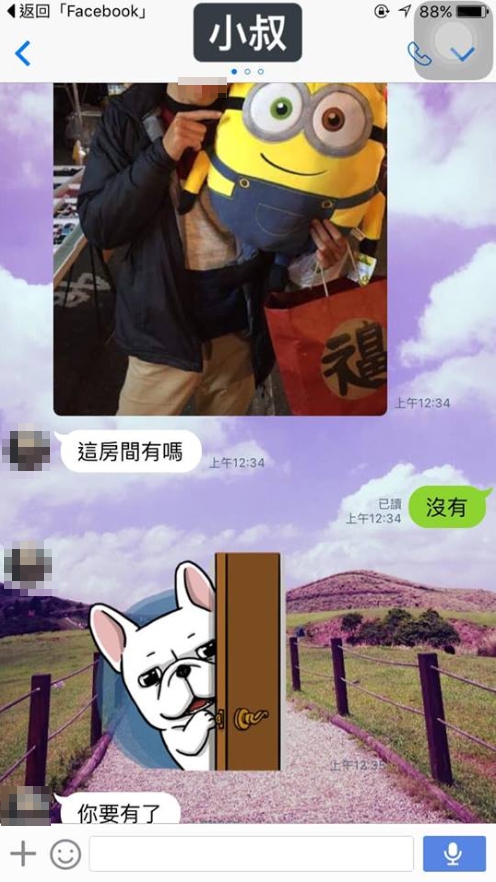 ▼當中討論度最高的就是原po的小叔了!原來小叔知道原po喜歡卡通人物「小小兵」,特地傳了一張照片給她詢問「這房間有嗎?」當原po回答「沒有」之後,小叔竟然回應「妳要有了!」透露娃娃是要送她的禮物!