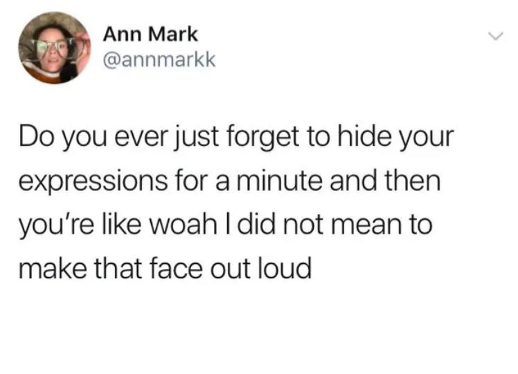 ▼各位有沒有試過忘了做表情管理來隱藏情緒,下一秒才突然醒悟:「我不是故意要擺臭臉的!」