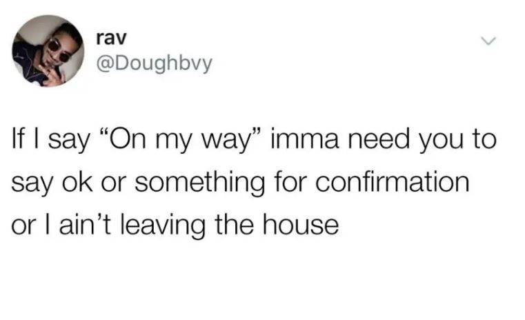 ▼當我說「在路上了」的時候,我需要你說「好的」或者其他肯定的話,否則我是不會出門的!