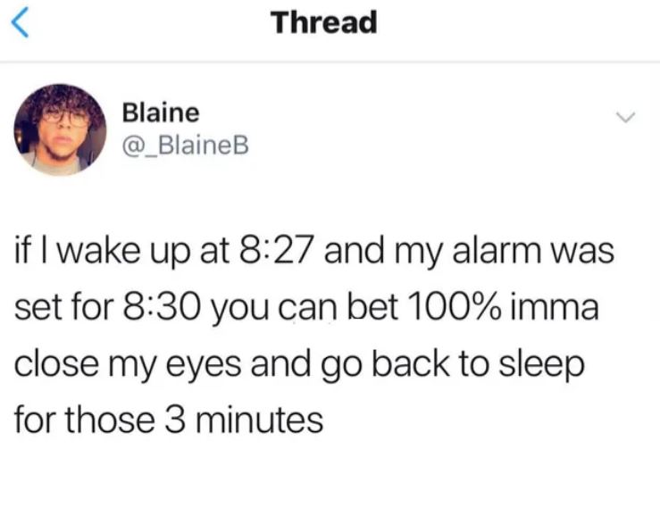 ▼如果我的鬧鈴時間是早上 8:30分,而我在 8:27分就起床的話,我絕對會閉上眼睛繼續多睡3分鐘!