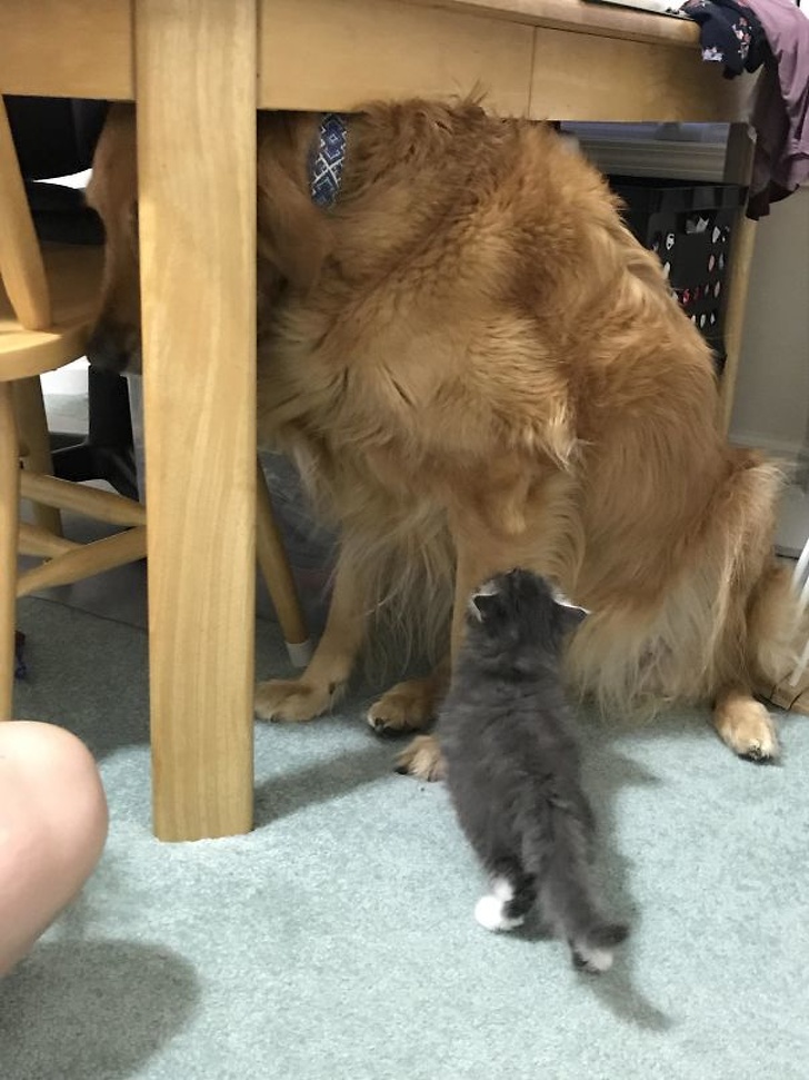 ▼「救命啊,可怕的貓把我逼到牆角了。」