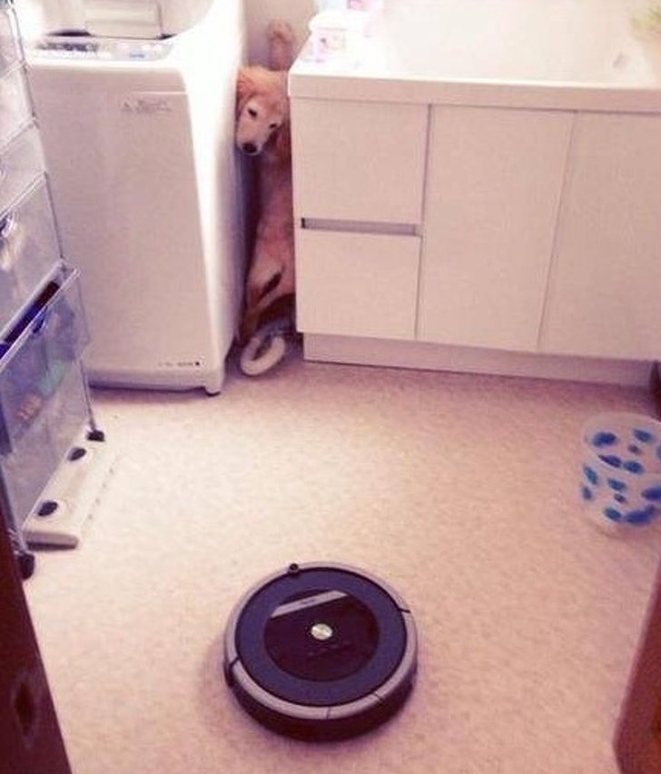 ▼「Jim,我說過這個掃地機器人有侵略性,現在你相信了吧!」