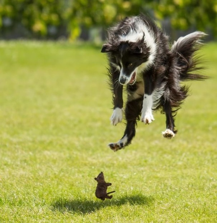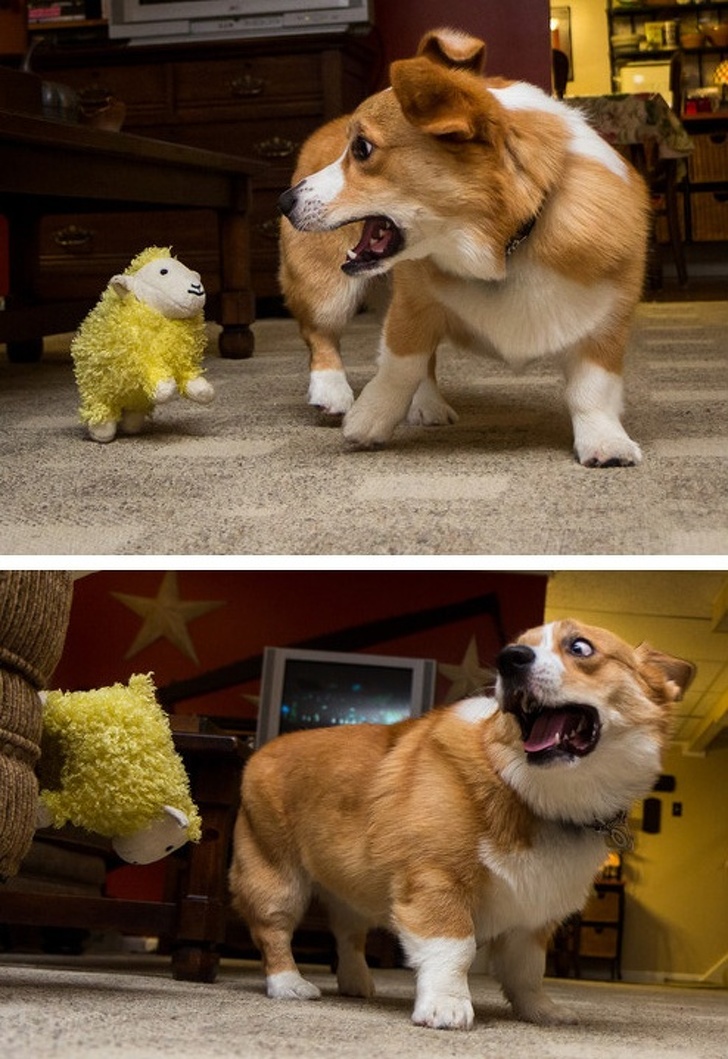 ▼「誰說狗狗不怕老鼠?我就怕啊!」