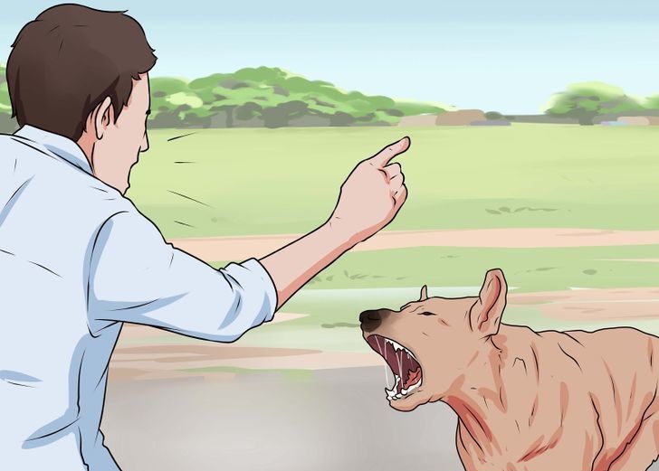 ▼1.狗狗已經撲向你。來不及躲避,你可以試著兇狠的說「走開!」。狗狗聽到這樣的恐嚇,就會有些害怕了。