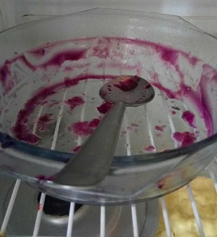 ▼8.打開冰箱看到髒兮兮的空盤子。