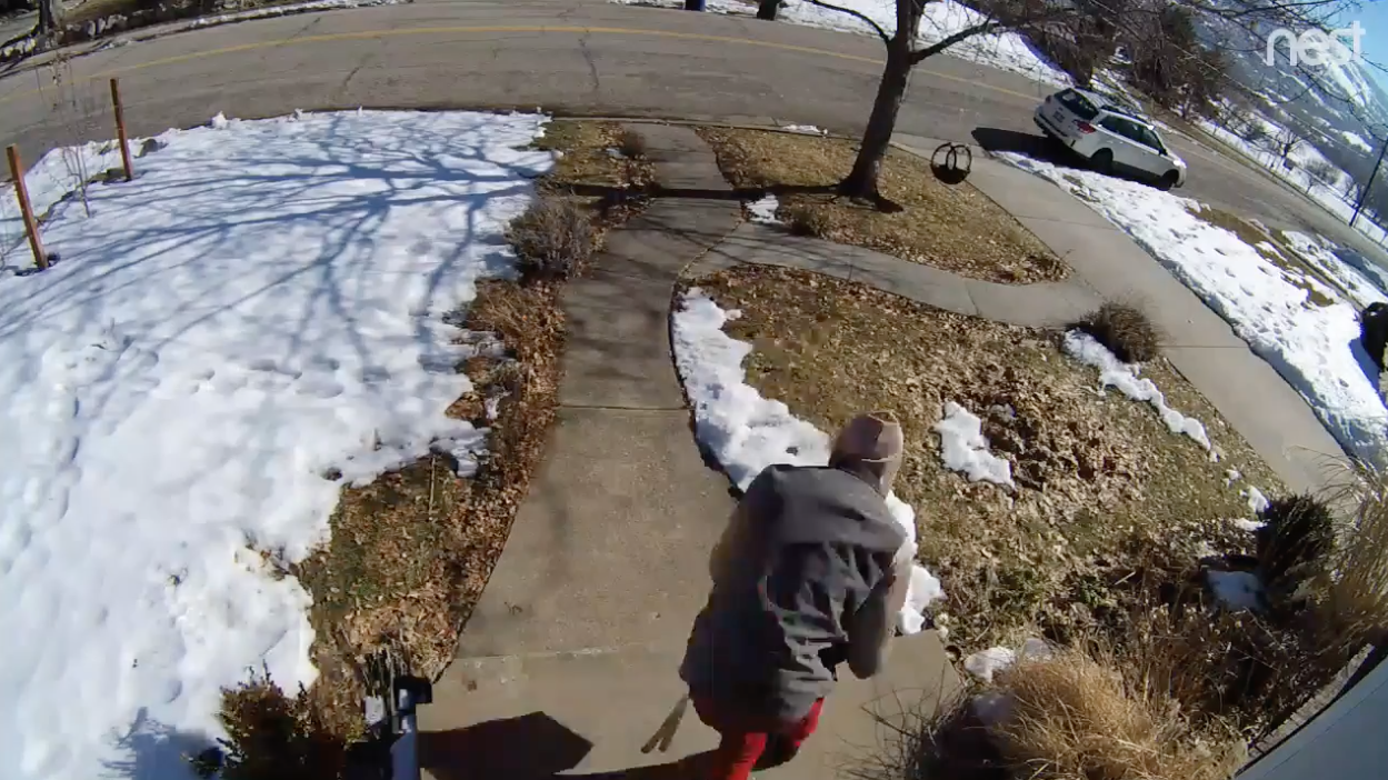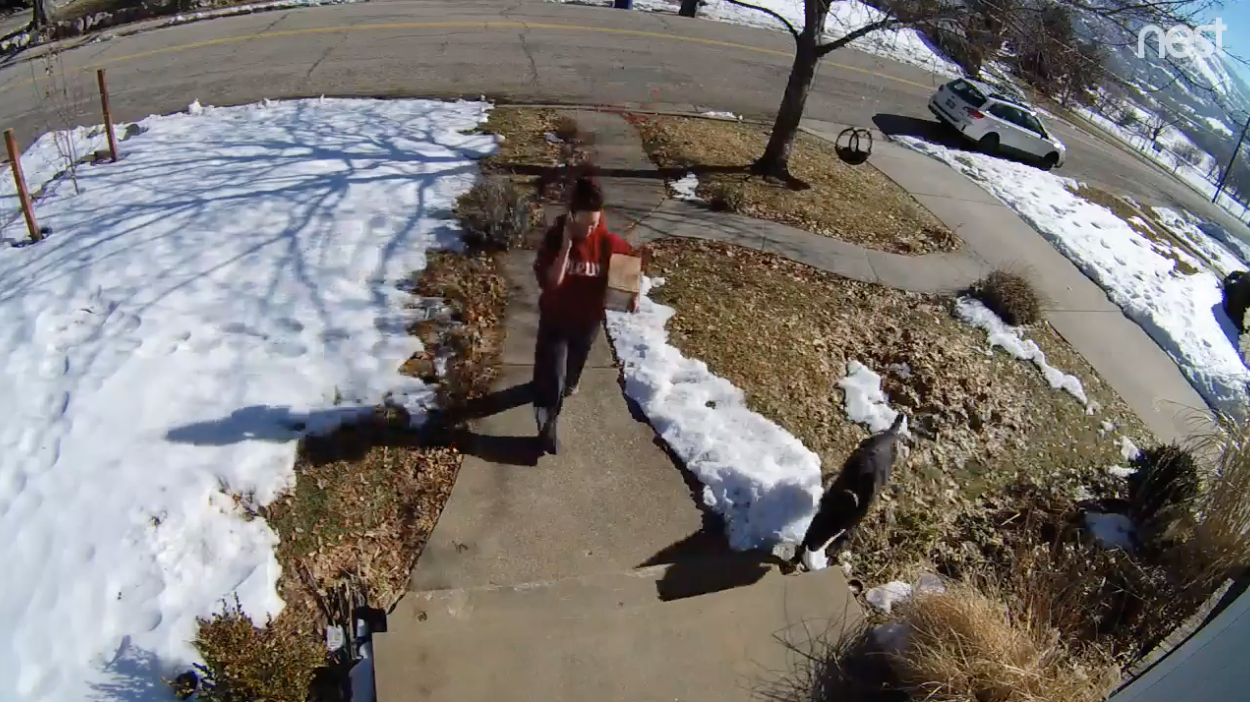 ▼當時,有一位竊賊躡手躡腳地來偷他們家門廊的包裹,但等到竊賊轉身準備上車時,Zero衝了出來,開始對竊賊狂吠!