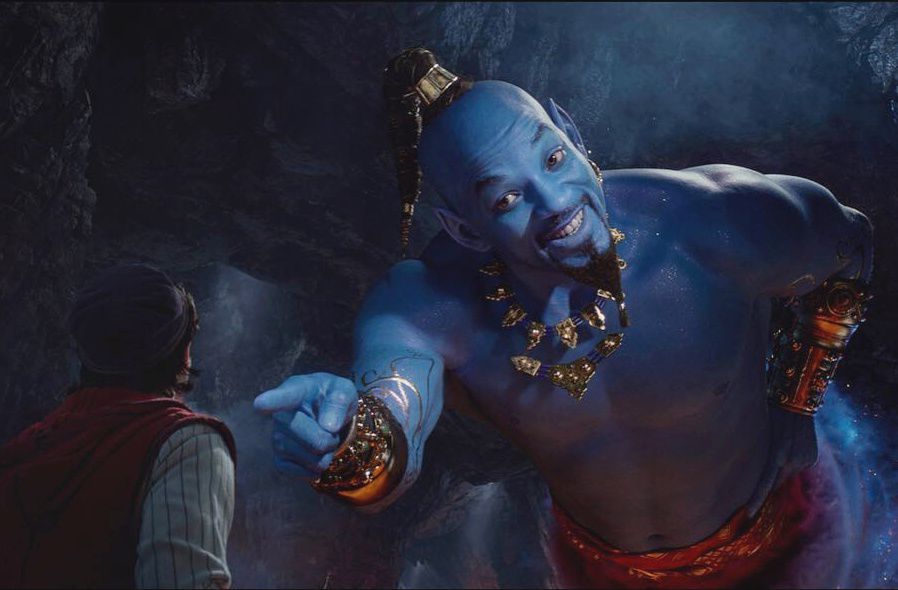 ▼在經典的《阿拉丁》動畫中,藍色的神燈精靈給人留下了深刻的印象。網友們知道這一角色由威爾史密斯出演時非常期待。不過首波劇照釋出時,威爾史密斯竟然不是藍色的,這讓不少人失望不已。